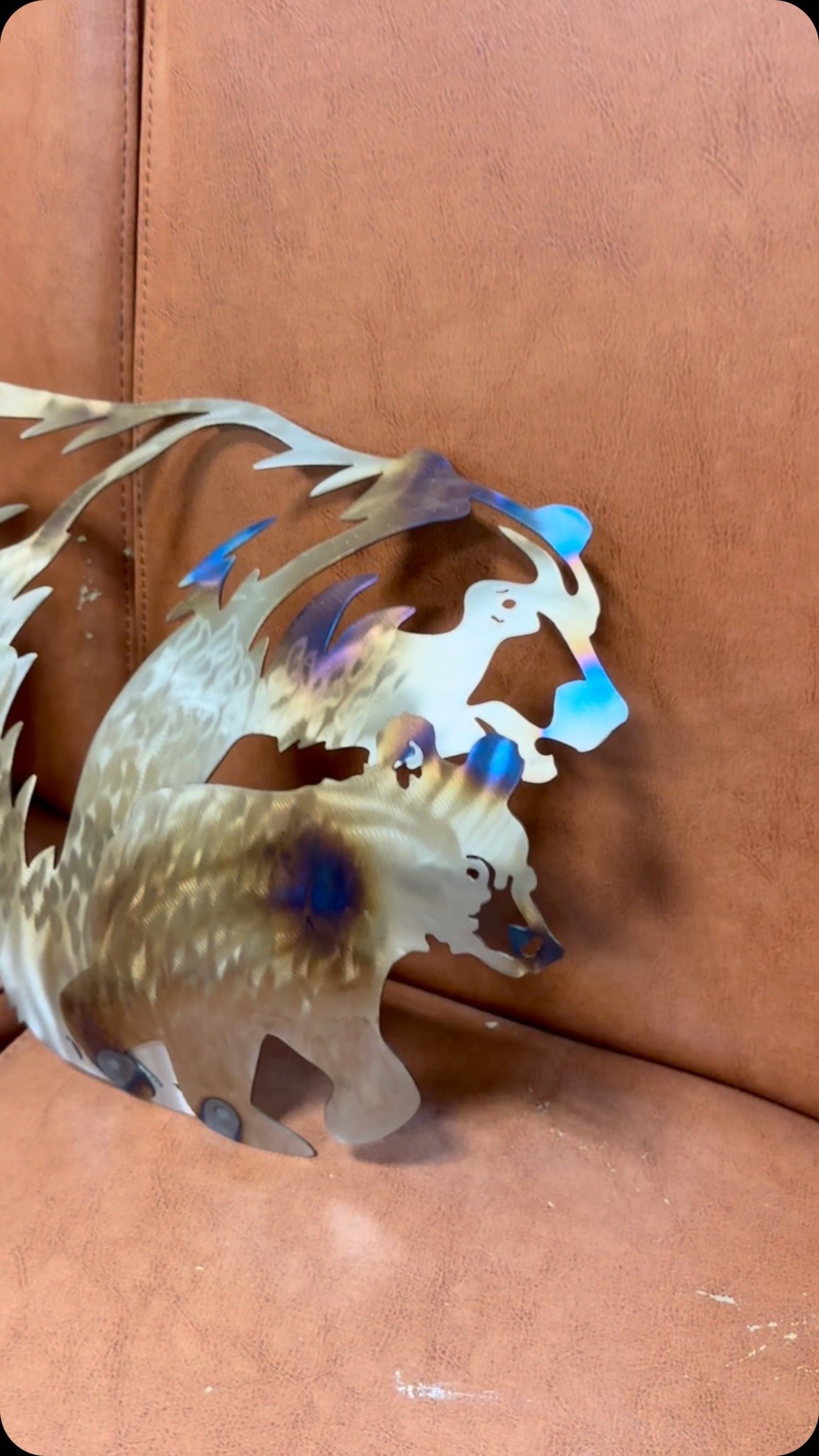 Let the sparks fly and let the Alaska scenery inspire your creativity in this fast-paced 2.5 hour metal art class. You will learn how to easily and safely use the 2" die grinder to smooth and texture a raw piece of cold rolled steel. Create memories as you grind, polish, shape and color your Alaskan wildlife creature of choice - geared up in all the provided safety equipment. As past clients have said - it is the memory of a lifetime turning a dull gray piece of steel into a shiny work of Alaskan art.